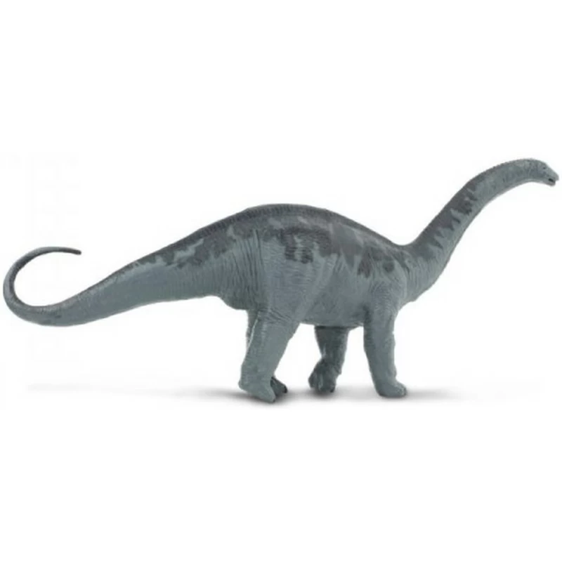 Sometimes referred to as “Brontosaurus,” Apatosaurus was neither as long as a Diploducus, nor as heavy as a Brachiosaurus. It had long, slender teeth that grew only on the front of its mouth. Like sharks, their teeth were replaced as they became worn or damaged. Scientists now accept that it reared on its two hind legs to reach leaves on the higher branches of trees. Some also believe that it may have used this posture and its great weight to defend itself if attacked.