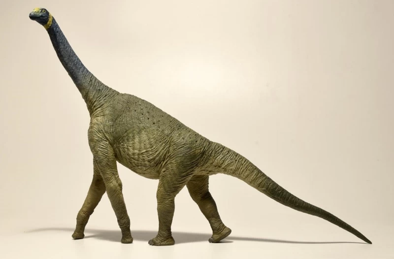 “Our reconstruction of the neck length corresponds to the fossils record. The descriptive scientific study of Atlasaurus reports that the neck measures 3.85 m long, and our recreation possesses a neck just below 4 m, sightly longer because of the intervertebral cartilage. Moreover, the photos of the cervicals we have confirms its extreme short neck. Other authors like Gregory Paul restore its neck somewhat shorter at about 3.5 m, while Nima Shahani increase its length to about 4.5 m. We feel the first estimate is too short, and the second too long based on the current evidence. Atlasasurus was once considered part of brachiosaurid family. However, phylogenetic studies place it as a basal neosaropod related to sauropods like Jobaria and Turiasaurus, which in part, explain the Atlasaurus’s very short neck.”