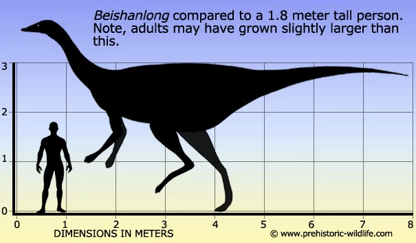 Beishanlong is een theropode dinosauriër behorend tot de Ornithomimosauria, die tijdens het vroege Krijt leefde in het gebied van het huidige China. Het meest opvallende kenmerk van Beishanlong is de grootte: het holotype is volgens de beschrijvers met een heuphoogte van twee meter zo groot als volwassen exemplaren van Gallimimus en woog, extrapolerend vanuit het dijbeen, 626 kilogram maar was nog niet volgroeid. Histoloog Gregory Erickson van de Florida State University heeft een speciaal botonderzoek uitgevoerd naar de microstructuur van de bovenste schacht van het rechterkuitbeen. Hieruit bleek dat het exemplaar ongeveer veertien jaar oud was — er waren dertien of veertien groeilijnen aanwezig — maar zijn groeistop nog niet bereikt had, hoewel de groei wel aan het vertragen was. Gregory S. Paul schatte daarom in 2010 de volwassen grootte op een lengte van zeven meter; het gewicht daarentegen gaf hij wat lager op vijfhonderdvijftig kilogram. Beishanlong zou daarmee zelfs de plaats van Gallimimus innemen als de grootste bekende zekere ornithomimosauriër, ware het niet dat daarvan fragmenten gevonden zijn die duiden op een lengte van acht meter. De bouw van Beishanlong was daarbij zwaar, met robuuste ledematen. Voor de rest lijkt het dier in het algemeen niet af te wijken van de morfologie van zijn verwanten: het is waarschijnlijk een snelle warmbloedige tweevoeter met een primitief verenkleed; een lange nek draagt een kleine tandeloze kop. De bewaarde resten omvatten de gebruikelijke lange armen en benen. De handen, voeten en hun klauwen zijn echter niet zo extreem verlengd als bij latere vormen.