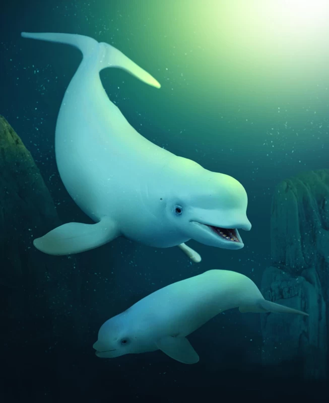 The beluga whale is an Arctic and sub-Arctic cetacean. It is also known as the white whale, as it is the only cetacean to regularly occur with this color. Belugas are one of the most commonly kept cetaceans in captivity and are housed in aquariums and wildlife parks in North America, Europe, and Asia. They are considered charismatic because of their smiling appearance, communicative nature, and supple graceful movement.