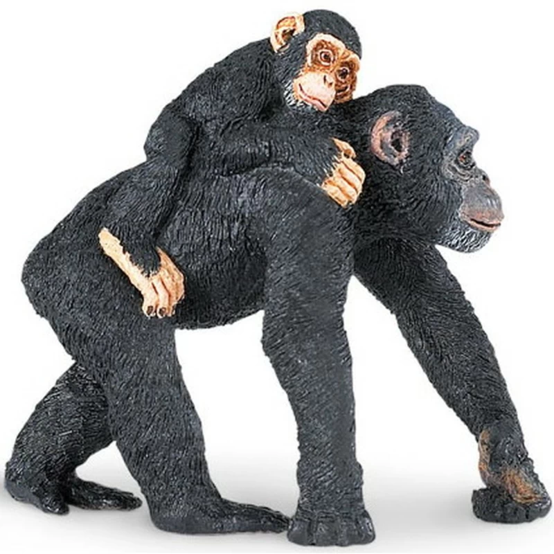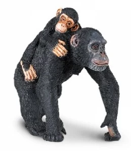 In de categorie Apen en Halfapen van Safari Ltd, de Chimpansee, hier met jong. Mooi diermodel van stevig kunststof. Veilig speelgoed voor jonge kinderen om uren mee te kunnen spelen, om nog jaren plezier van te hebben. Realistisch vormgegeven plastic dierfiguur leuk voor jong en oud.Â