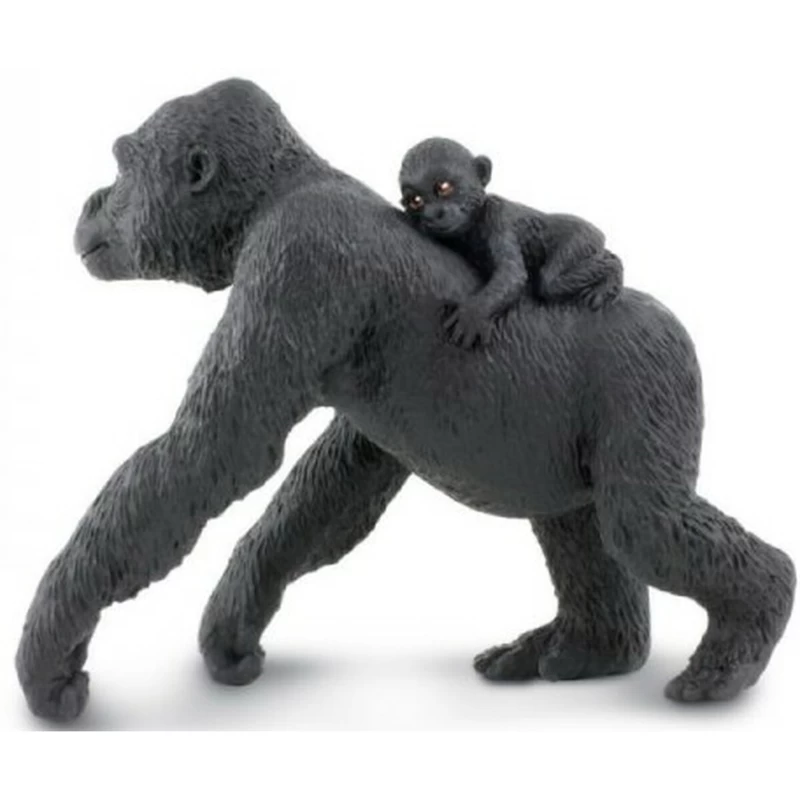 In de categorie Apen en Halfapen van Safari Ltd, de Gorilla met baby. Mooi diermodel van stevig kunststof. Veilig speelgoed voor jonge kinderen om uren mee te kunnen spelen, om nog jaren plezier van te hebben. Realistisch vormgegeven plastic dierfiguur leuk voor jong en oud.Â